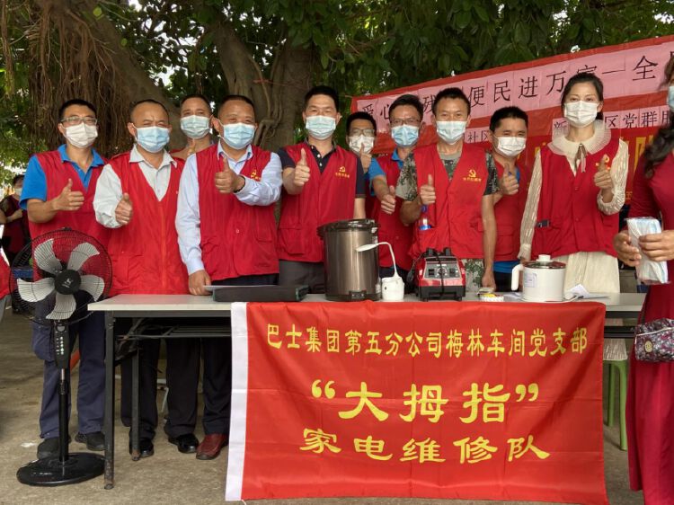 巴士集团第五分公司梅林车间党支部“大拇指”家电维修队在新阁社区已经家喻户晓了。现场居民说:“以前家里电器坏了都直接扔了换新,不知道哪里有修理的,现在社区免费给大家修电器真好”。
