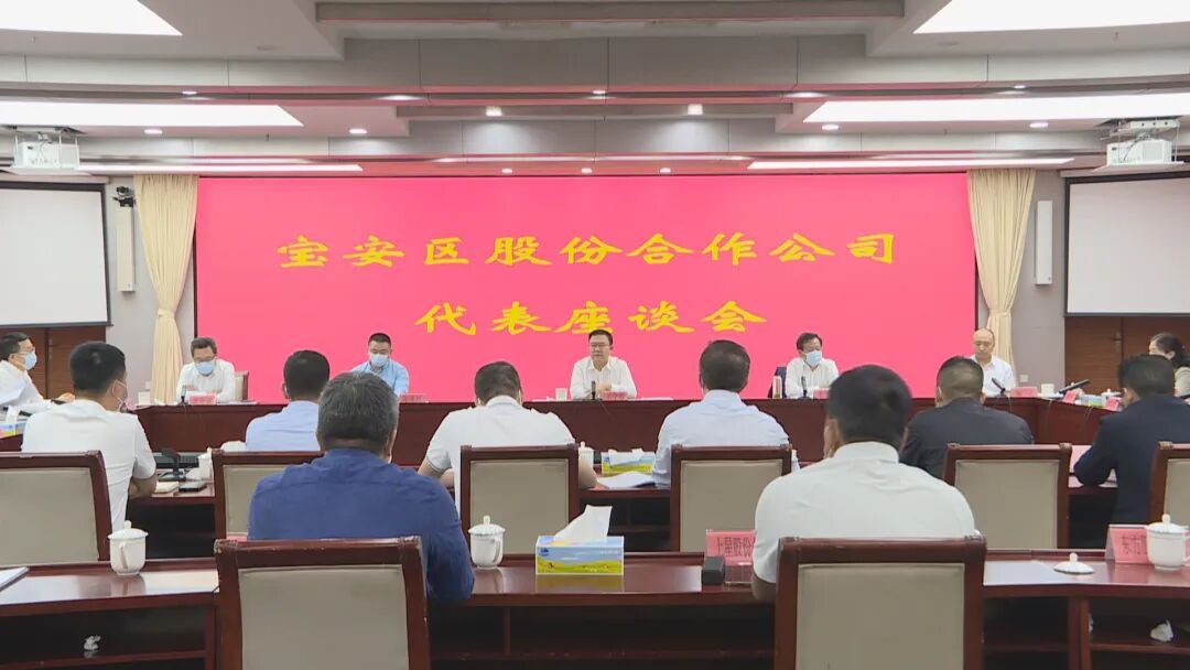 5月17日,宝安区召开股份合作公司代表座谈会,研究分析辖区股份合作公司发展现状,部署下一阶段园区提质增效、集体经济转型发展等工作,推动区委“422133”工作主框架落实。宝安区委书记王守睿要求,各股份合作公司要紧抓宝安高速发展的重大战略机遇,紧紧围绕“422133”工作主框架,为城市发展腾挪优质的产业空间,为区委区政府引入优质产业提供空间保障;各街道各有关部门要提高认识,加快促进股份合作公司转型升级,要关心、支持和扶持各股份公司的发展壮大,最终实现股民、股份合作公司和社会利益等多方共赢发展。宝安区委副书记、区长王立德参加座谈。