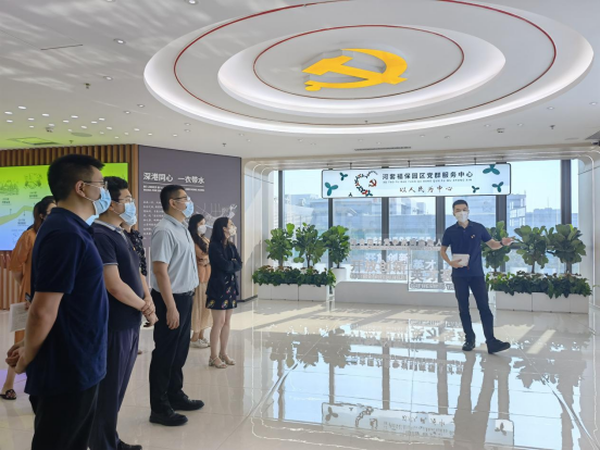 位于长富金茂大厦二楼的河套福保园区党群服务中心于2021年正式对外服务,内设新时代大讲堂、深港历史智慧文化墙、政企云空间、港湾书吧、咖啡吧和宣誓厅等功能区,港湾书吧24小时开放,政务服务5G视频一站式办理,“深港同心”系列IP文化活动序时打造。