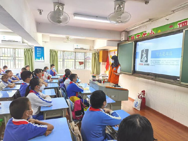 5月23日,罗湖区清水河街道综合治理办组织禁毒社工在侨香实验学校开展了一堂主题为“跟着粤虎学禁毒”的毒品预防教育课。
