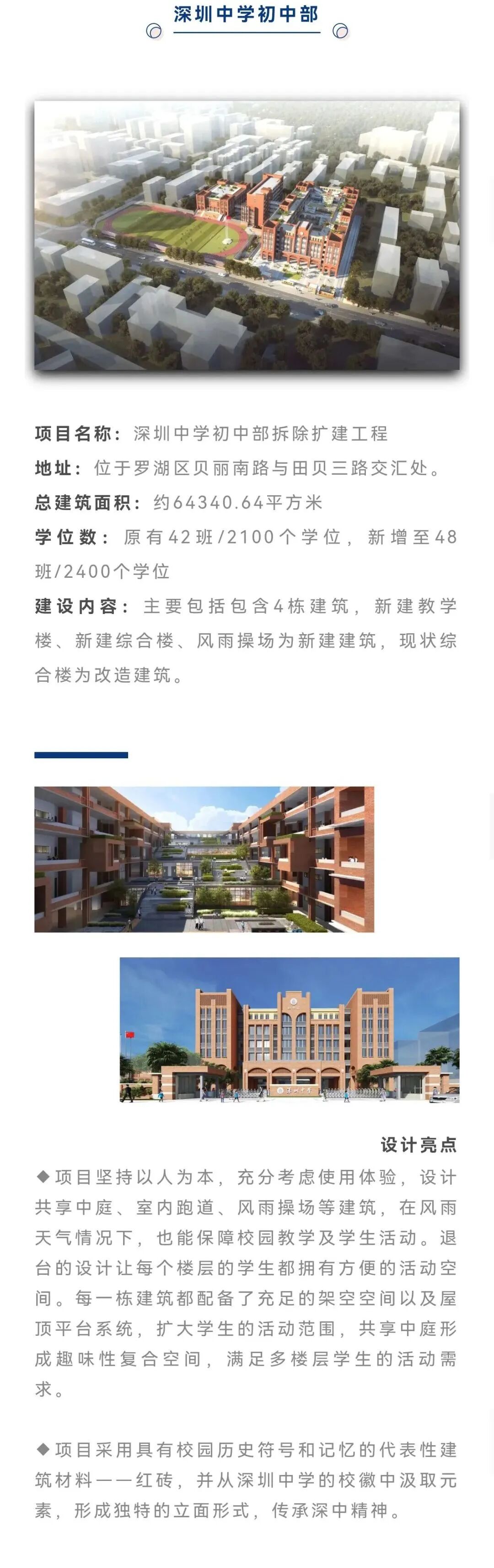 深圳将有6所中学项目年内交付,学校建成后将给师生带来更舒适、更人性化的学习生活体验,一起先睹为快吧~ 除了以上2所学校 深圳还有4所学校加速建设中 同样将于年内交付 速来了解 (来源:新时代新罗湖) 编辑 昌慧 审核 谭凤希