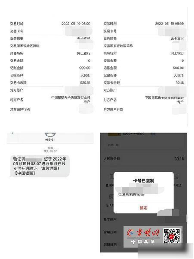 徐女士扫描二维码后按照流程,输入了银行卡号、姓名、身份证、手机号以及银行卡可用额度等个人信息,随后还输入了手机上收到的验证码。一番操作后,工资补贴没有领取到,徐女士银行卡中的10000元存款却不翼而飞。