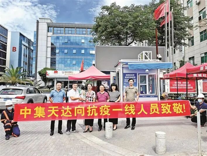 5月26日,福海街道企业中集天达党委向展城社区捐赠一台自家企业生产的便民核酸采集移动工作站,为进行核酸采样的医护人员提供凉爽、舒适的工作环境。
