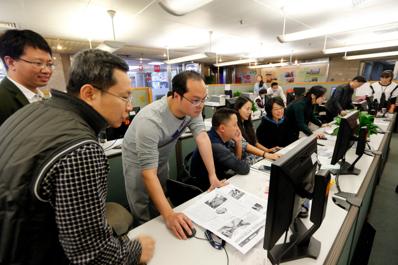 2016年在深圳特区报业大厦组版房,忙碌的夜班编辑。