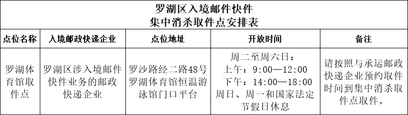 ○罗湖入境邮件快件集中消杀取件点调整