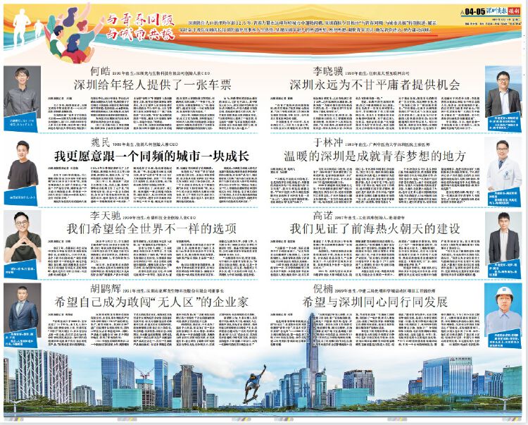 深圳常住人口的平均年龄32.5岁,青春力量在这座年轻城市中蓬勃闪耀。读创/深圳商报今日推出“与青春同频 与城市共振”特别报道,展示年轻奋斗者在深圳成长打拼的追梦故事和人生感悟,呈现深圳年轻人的所思所想、所梦所愿,凝聚青年共识、激发青春活力、助力建功深圳。