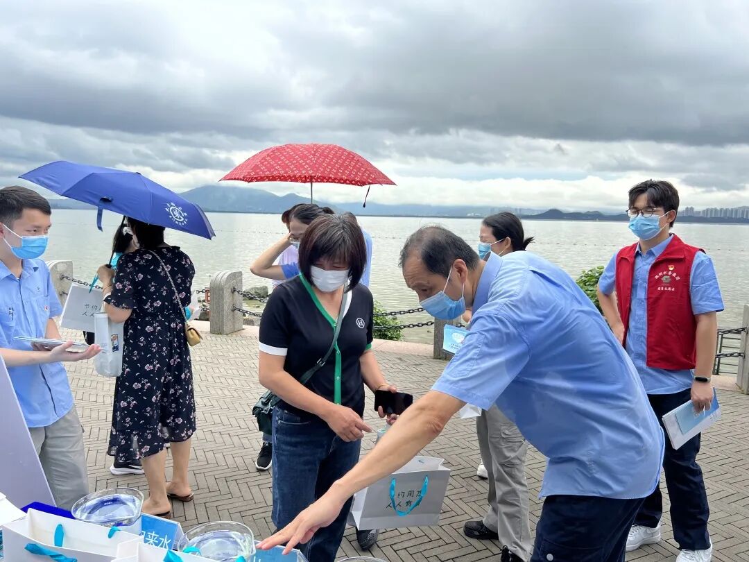 同时,福田分公司专业人员为来往市民宣传介绍了集团在水处理、流域整治等方面的工作及相关的科普知识,讲解了生活污水与自来水的水质区别。许多市民在了解了水处理生产工艺流程后,饶有兴趣地关注了集团公司微信公众号,希望在未来更多地了解行业内水务动态,关注深圳市水资源保护,共同守护美好家园。