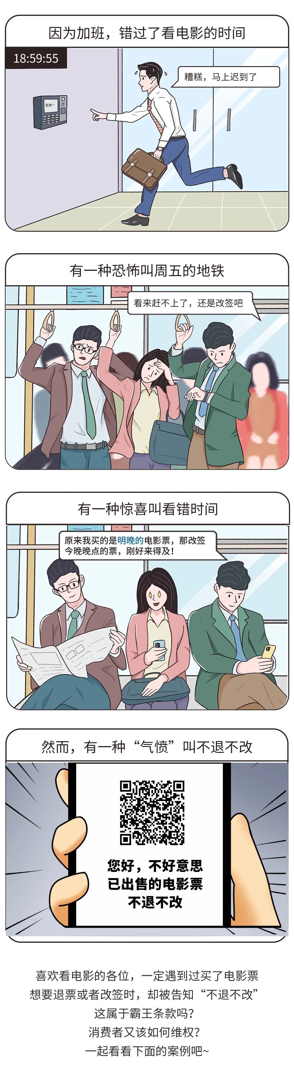 王先生通过某售票网站订购某电影城当晚的2张电影票,出票之后发现时间错选成第二天晚上。因售票网站上没有设置退票流程,王先生立马联系售票网站客服要求改签,却被告知要与电影城联系。王先生遂与电影城联系,不料电影城态度强硬,以王先生购票前已勾选同意“不退不改”协议为由,拒绝退改签。