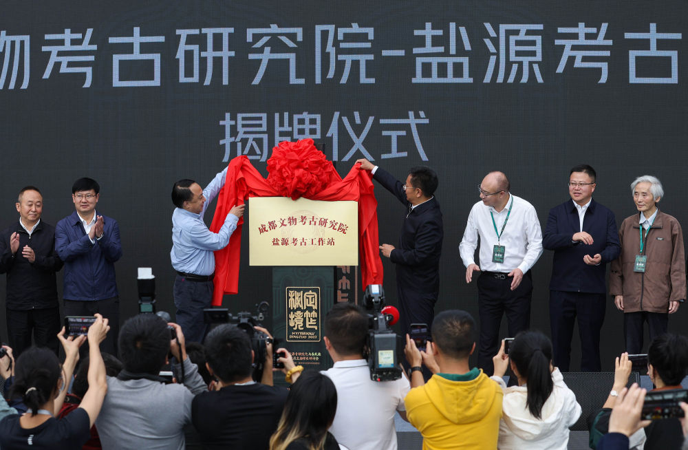 6月18日,在盐源青铜文化与各民族交往交流交融学术研讨会上,举行了“成都文物考古研究院盐源考古工作站”揭牌仪式。新华社记者江宏景 摄