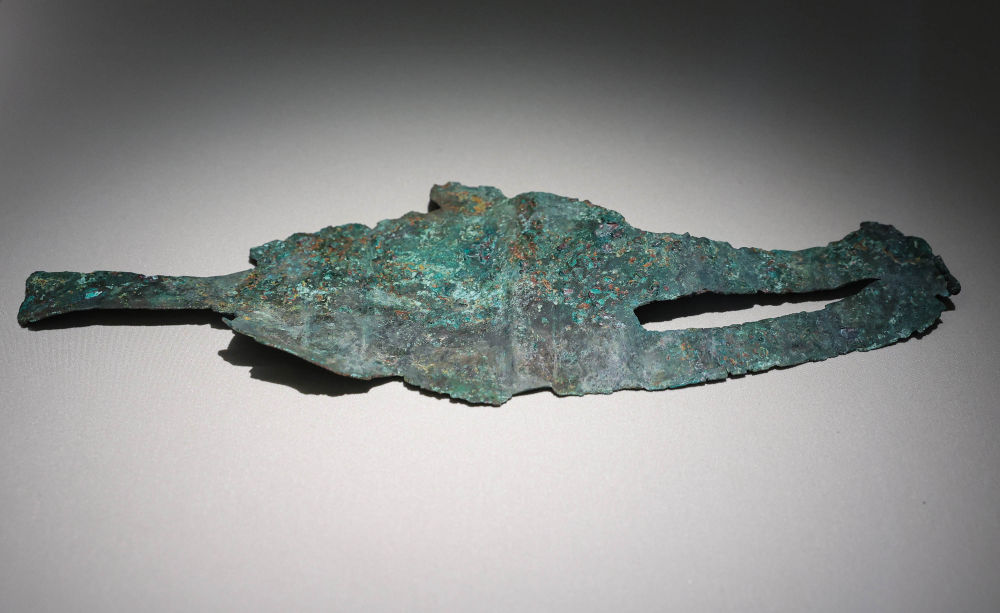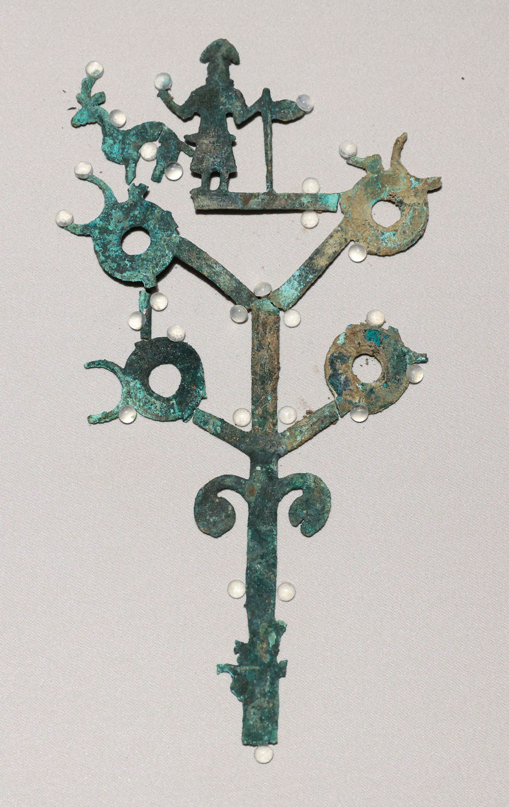 这是出土于盐源县老龙头遗址的青铜枝形器(6月18日摄)。新华社记者江宏景 摄