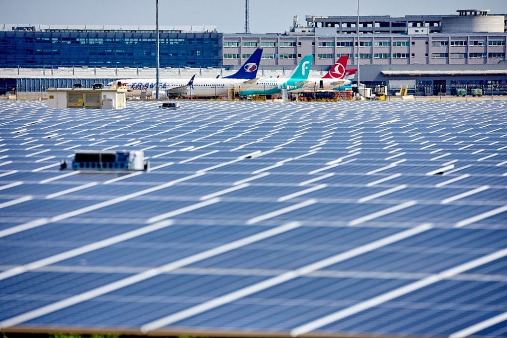 这是5月24日在奥地利维也纳国际机场拍摄的光伏发电系统。新华社发(乔治斯·施耐德摄)