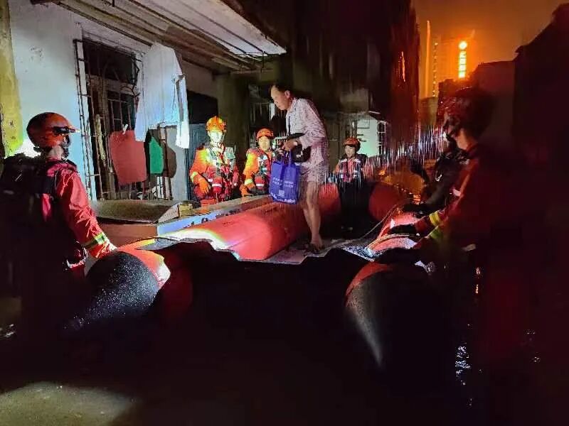 武江区惠民街道,武江消防救援大队转移工业中路被困群众。