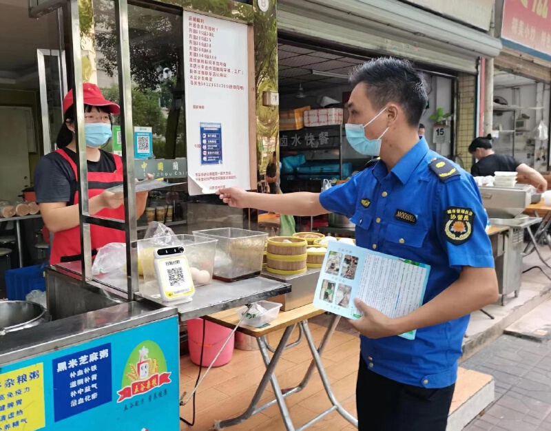 新安街道综合行政执法队践行“以人民为中心”的工作理念,用“绣花功夫”不断提高精细化管理水平,持续优化、提升城市环境品质,助力优化营商环境。6月初,该队结合全国文明城市创建、环境卫生指数测评等工作,用心制定《致新安街道全体商户的告知书》,编制了通俗易懂、便于记忆的“五字诀”——“保持一米距,亮码测体温;经营要规范,证照须齐全;门前三包制,责任要落实;门线不可超,商品不乱摆;不贴小广告,不拉挂横幅……”,引导沿街商户(业主)争当模范表率,自觉遵守防疫、工商、环保、城市管理等各项规定,主动纠正各种不文明经营及市容违法行为,切实做到“合规”经营,从源头上减少各类城市乱象,共同维护优美的城市环境。