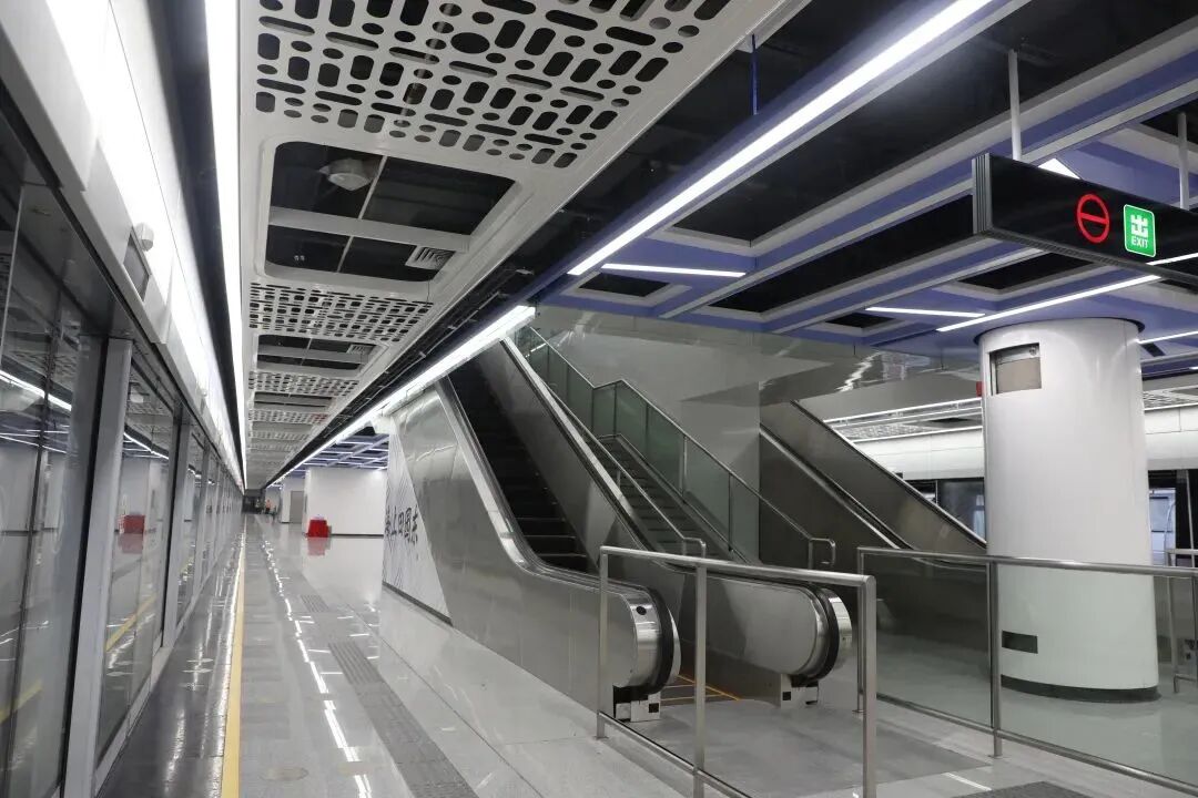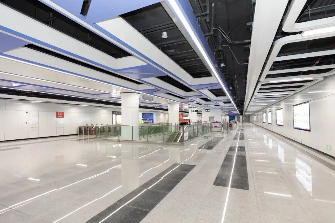目前车站已基本完成装修,站厅内照明、刷卡闸机、自动售票机等设施均已安装完毕。