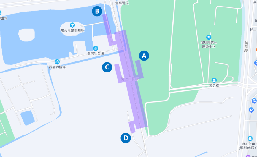 通道设卫生间;位于丰民路(规划)西侧,近皇冠钓鱼场、姜公钓鱼场,萤火虫路亚基地,西部钓鱼场,民主新村