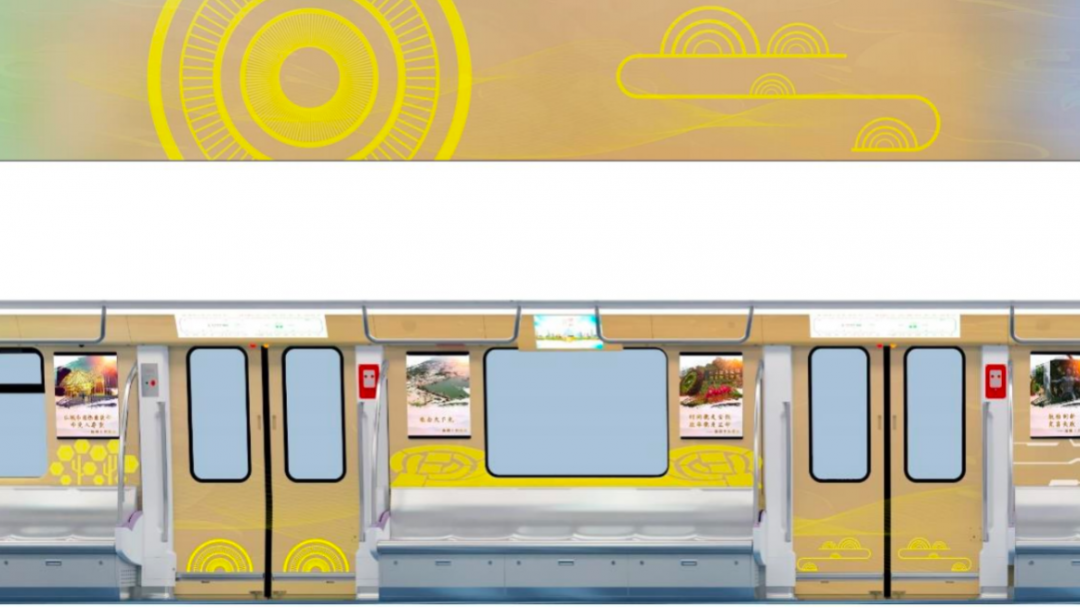 第二节车厢以黄色为主色调,将南头古城元素融入祥云,构成了文化之“脉”,生生不息,充满强大生命力。