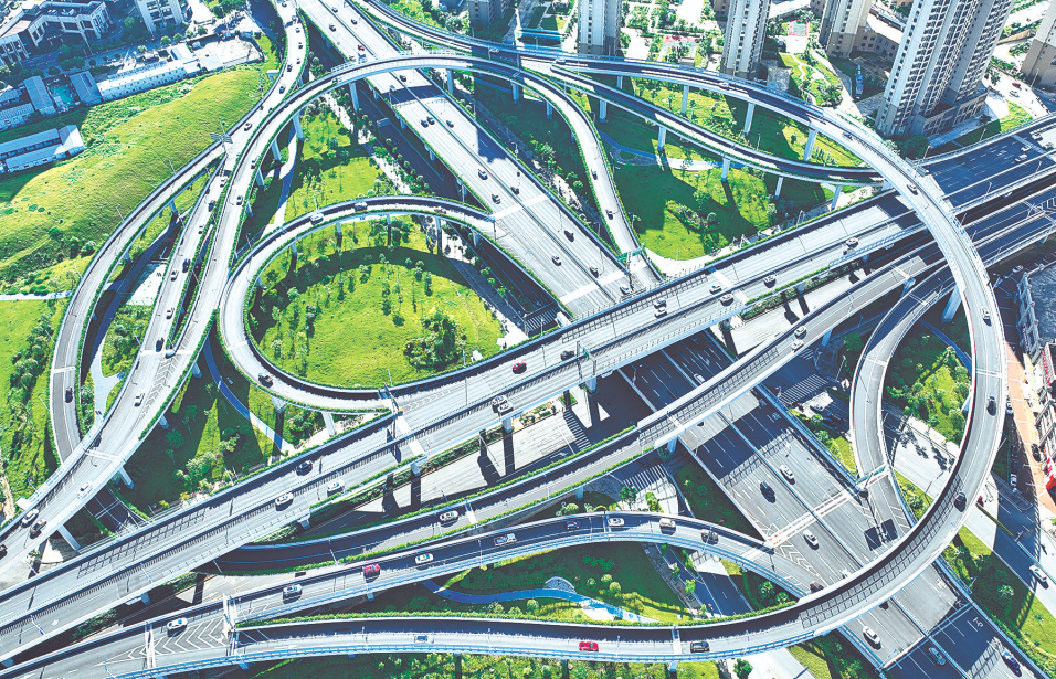 6月26日,车辆行驶在赣南高架快速路上。近年来,赣南大力推进快速路建设,形成“四横六纵一环”城市快速路网,成为江西省建成通车快速路网最长的“高架城市”。特约记者朱海鹏 摄