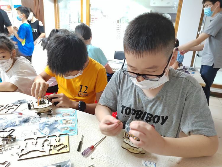 小朋友们纷纷表示成就感满满,畅游科学的世界非常愉快。其中一位小朋友说到:“通过本次科学小实验,我不仅学会了智能循迹车运行的原理,还成功制作了出来,我的小汽车成功地动了起来,我太开心了。”