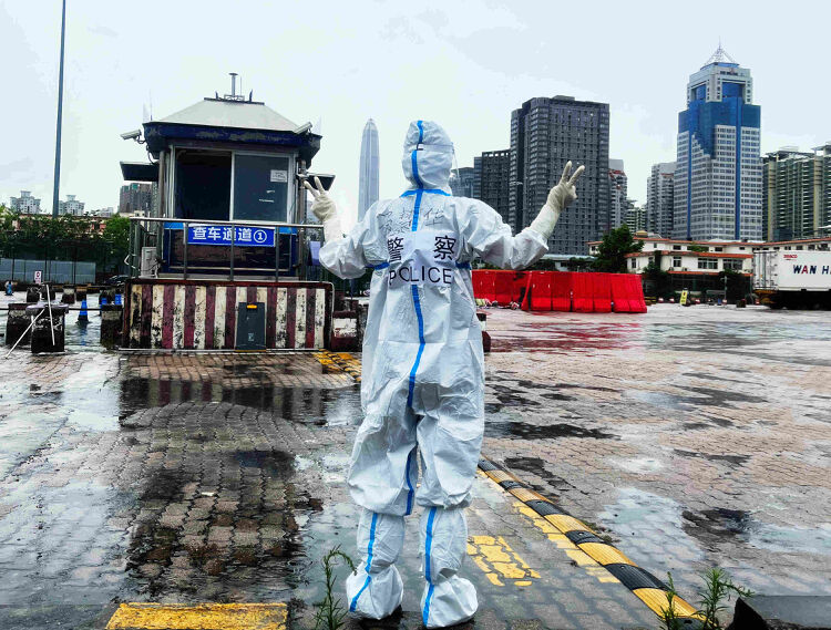 6月的鹏城,在落马洲河畔的皇岗口岸,虽时而暴雨如注,时而高温暴晒,但一支女警小分队依然“逆行”忙碌地穿梭于满载供港物资的货车车流中,厚重、密封的白色防护服遮不住她们的飒爽英姿,这就是参与闭环任务的皇岗出入境边防检查站执勤十六队“巾帼文明岗”移民管理女警。