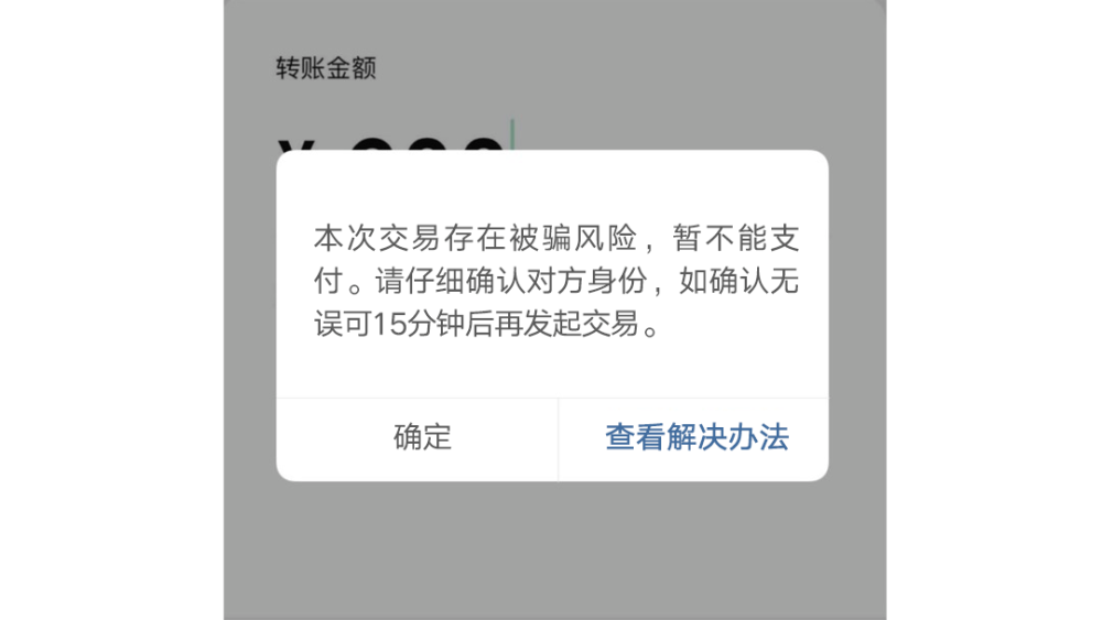 当系统识别出收款方账号涉嫌欺诈违规,或者恶意程度较大,微信会对交易进行拦截保护,提醒用户注意资金安全,对付款用户进行15分钟的保护限制。