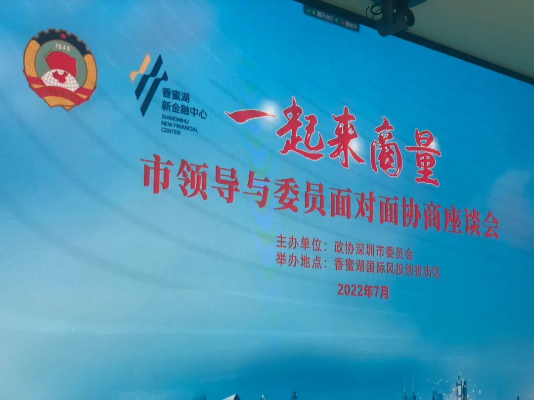 7月12日,深圳市政协2022年首场“一起来商量”市领导与委员面对面协商座谈会在香蜜湖国际风投创投街区举行。市长覃伟中应邀参加,与政协委员、创投界代表人士面对面“商量”。
