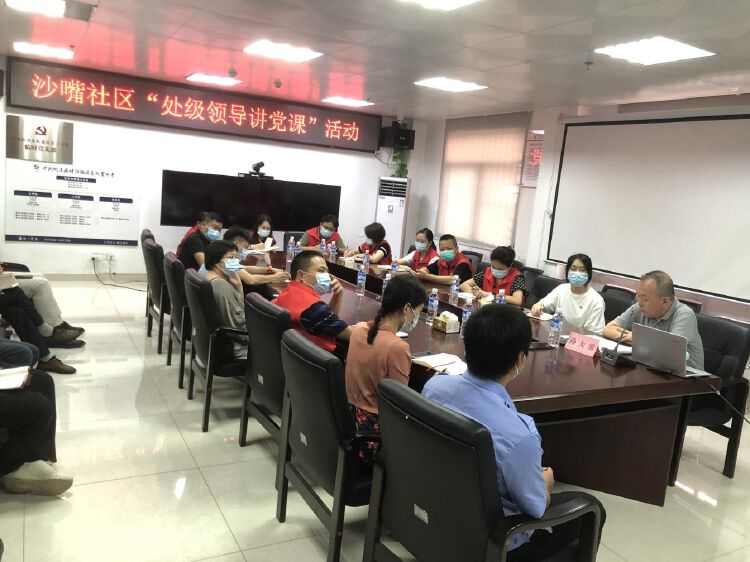为激发社区党员的凝聚力和战斗力,近日,沙头街道党工委委员、纪工委书记、沙嘴社区挂点领导孙大雷赴沙嘴社区党群服务中心会议室开展主题党课活动,社区党委班子成员、社区党员、各支部书记等约30人参加。