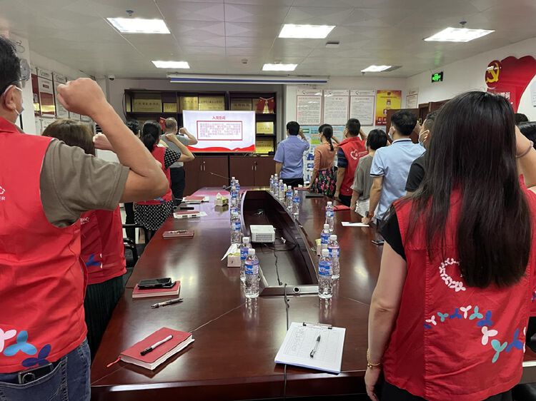 孙大雷带领沙嘴社区党员和支部书记重温入党誓词,号召各位党员铭记入党初心,坚定理想信念,为实现中华民族伟大复兴的中国梦筑牢思想根基。