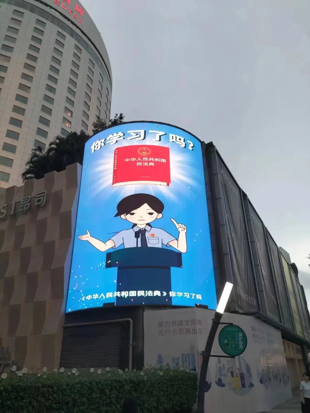 本周,该系列视频将出现在南山区海岸城等商圈、科技园等商务区、南山大道等主干道上的62个户外大屏幕上,全天候播放,帮助更多的群众了解民法典。这也是南山区检察院首次以户外投放视频的形式开展法治宣传,在不断拓展检察机关工作影响力的同时,营造全民学法用法的浓厚氛围,提高人民群众获得感、安全感、幸福感!