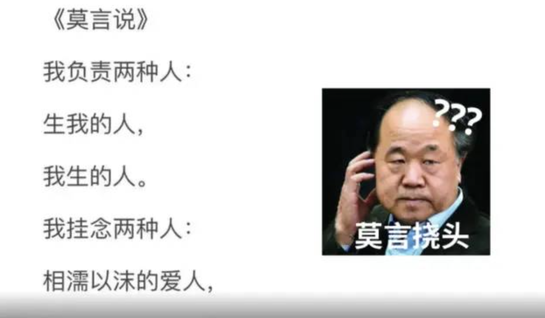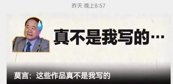 文章中,莫言对一些谣传是其本人所写的文章和诗词金句,发布视频进行打假,还不忘配上本人表情包↓