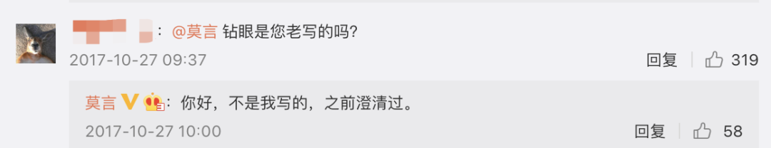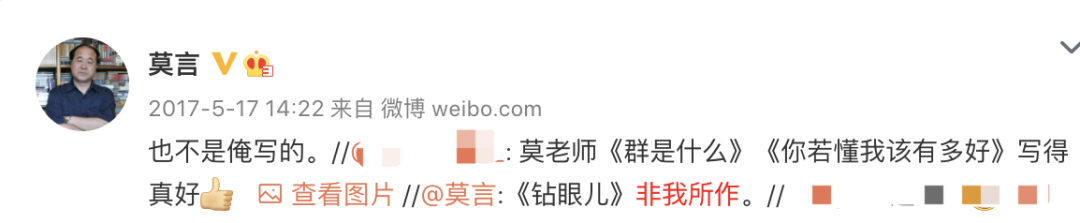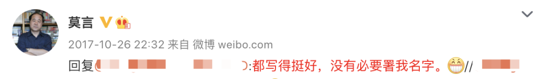 中国青年报注意到,对于一些冒名作品,莫言曾多次发微博澄清。