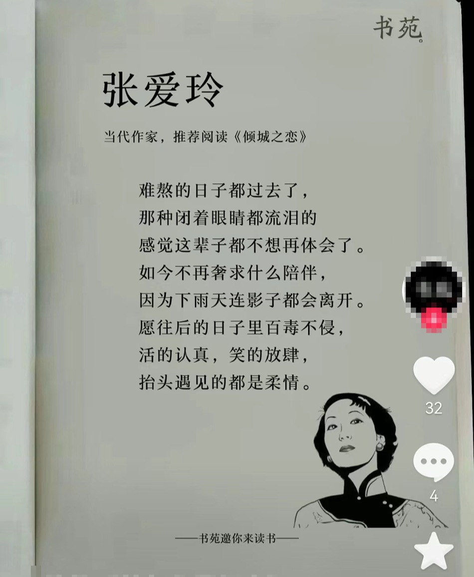 另据澎湃新闻消息,在短视频平台中,部分盗版书籍的营销,往往通过虚构一些不存在的“名人名言”,制作成短视频进行传播,并和图书捆绑销售。而短视频的主角,一般是知名作家或是商业巨头。例如,杜撰张爱玲语录“活的认真,笑的放肆,抬头遇见的都是柔情”。