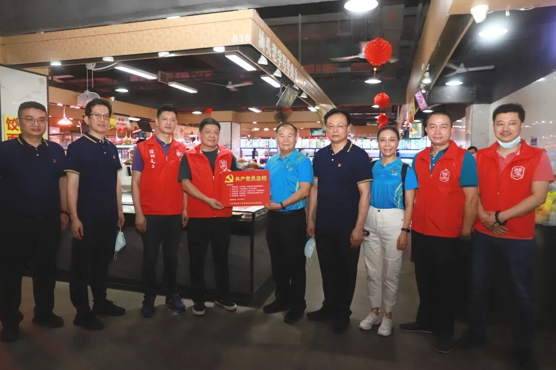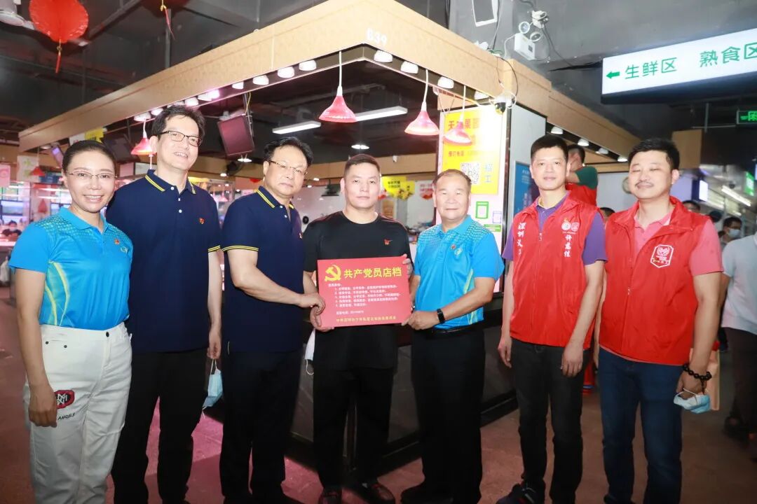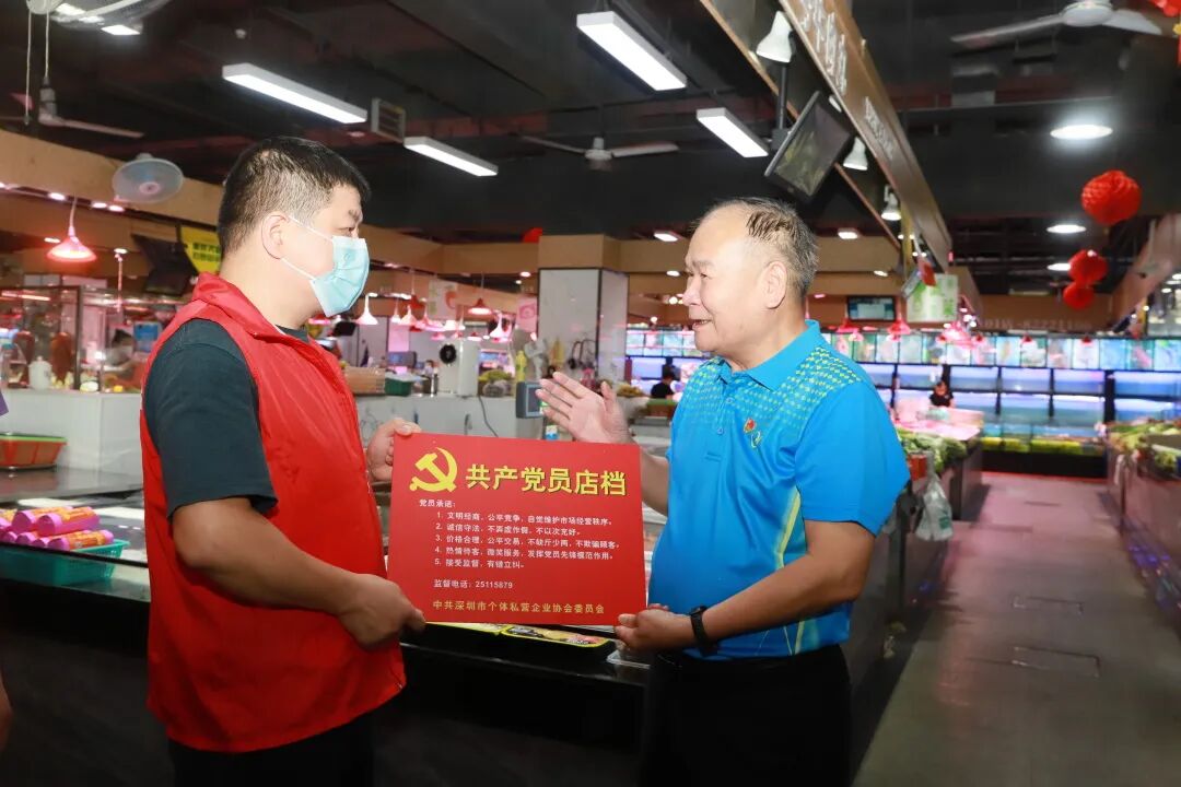 为进一步发挥共产党员的引领示范作用,打造良好的营商环境,7月14日下午,在市集贸市场有限公司党支部、市个私协会机关党支部、园岭个体党支部全体党员及园岭肉菜市场广大商户的共同见证下,市个私协会党委书记曾宏兴将三块鲜红的“共产党员店档”牌匾分别颁发给在园岭肉菜市场经营的鸿升商店陈惠君、文记副食品行许少涌、潮汕卤味行许少松三位个体商户党员,并被他们迅速悬挂在店档最显眼的位置。