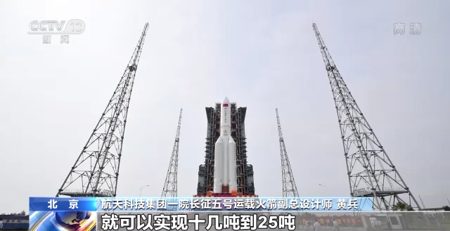 航天科技集团一院长征五号运载火箭副总设计师 黄兵:现在的长五火箭经过模块化的设计,实现了6个构型的覆盖,使得它从近地轨道的发射能力,就可以实现十几吨到25吨,从GTO(高轨道)的发射能力,从7吨到14吨,它自身就可以成为一个体系。
