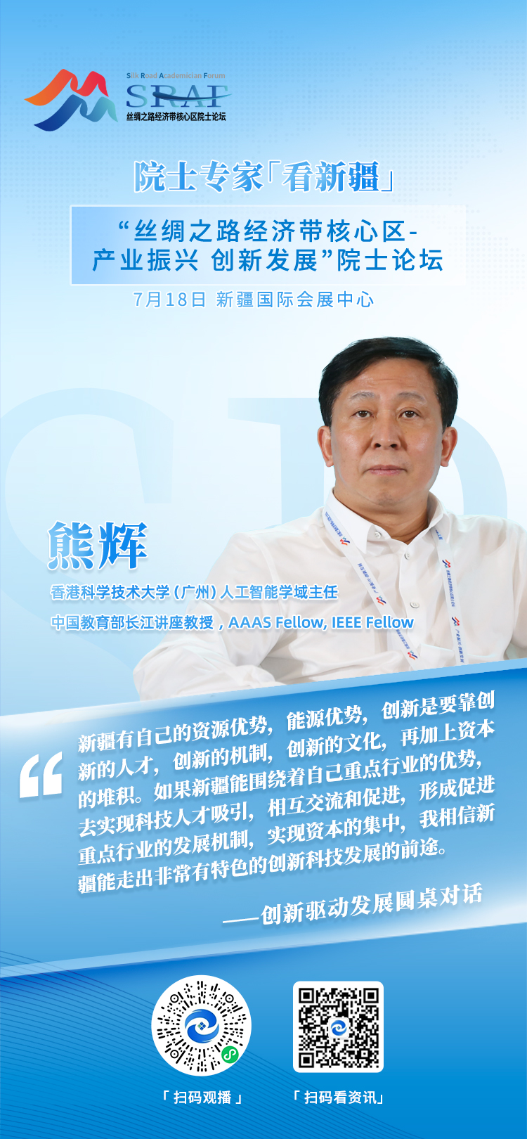 其中,“创新驱动发展”圆桌对话由香港科技大学(广州)人工智能学域主任、长江讲座教授熊辉主持,新疆维吾尔自治区工业和信息化厅党组书记张俭,新疆维吾尔自治区科学技术厅厅长凯赛尔·阿不都克热木,中国(深圳)综合开发研究院副院长曲建,中科院深圳先进技术研究院院长樊建平参加并发表演讲。