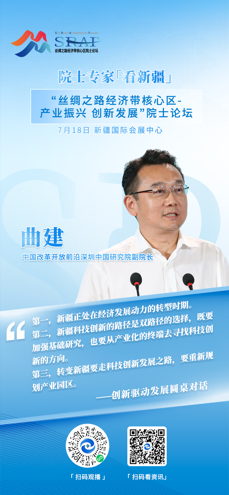 “丝绸之路经济带核心区——产业振兴 创新发展”院士论坛7月18日在新疆国际会展中心成功举行。作为院士论坛的重要组成部分,“推动经济高质量发展”、“创新驱动发展”、“产学研融合助推产业振兴”三大圆桌对话,汇聚了新疆自治区相关部门领导和对应领域院士专家,共话经济高质量发展。