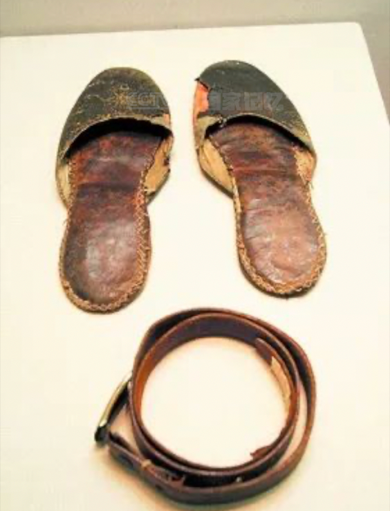 1965年在长沙,毛主席身边的工作人员看到这双拖鞋破得实在不能再用了,就劝毛主席换一双新的,可毛主席仍坚持补一补。有一次,当毛主席在长沙休息时。工作人员把这双皮拖鞋拿到阳台上去晒,结果用时却找不到了。后经询问才知道原来是值勤人员巡逻时,觉得这样破的拖鞋,放在毛主席的房间附近不太雅观,就拿走扔到垃圾堆里去了,工作人员听后赶紧把鞋找了回来。