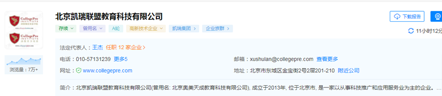 天眼查显示,凯瑞联盟成立于2012年12月,主要从事校外儿童英语培训特许经营活动,于2014年引进芝麻街英语,系芝麻街英语中国代理商(除福建及台湾),代理日期至2028年12月31日。