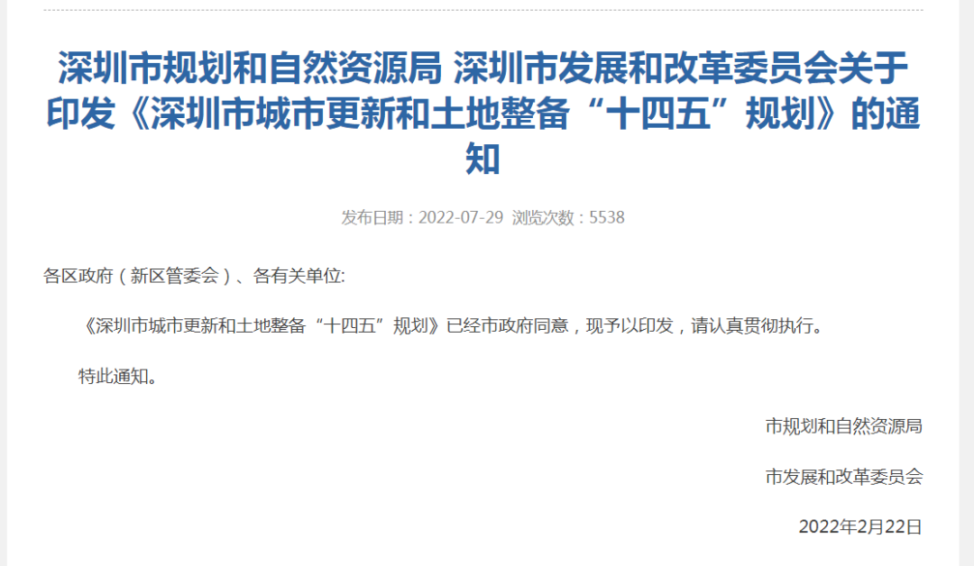 7月29日,深圳市规划和自然资源局、深圳市发展和改革委员会发布关于印发《深圳市城市更新和土地整备“十四五”规划》的通知。该规划显示,“十四五”期间,深圳全市城市更新和土地整备实施规模不少于95平方公里,规划期内完成城市更新和土地整备固定资产投资总额不少于 1 万亿元(含各类城市更新以及土地整备项目)。