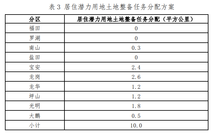 在加大商品住房供应,提高居住空间品质方面,规划提出以拆除重建类城市更新为主,土地整备供应用地为辅,规划期内直接供应的居住用地规模不少于 5 平方公里。稳步加大商品住房供应力度,逐步提高商品住房供应规模,规划期内争取通过城市更新和土地整备实现商品住房供应建筑面积不少于 3000 万平方米,力争通过土地整备完成居住潜力用地不少于 10 平方公里。