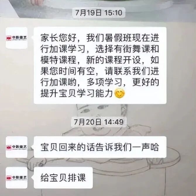 期间,一直有对接的老师询问李女士女儿回杭州没,好帮她排课,最近一次是7月20日。
