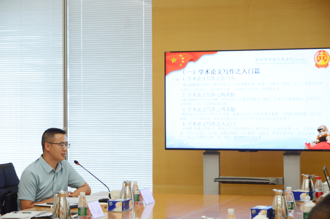 座谈会上,王远专委首先解读了《深圳市南山区人民法院关于鼓励开展信息、调研与学术研究的实施办法》,从工作机制、工作任务与要求、调研经费保障与奖励等方面进行了详细阐述,让与会人员对南山法院学术调研与“六优”成果培育鼓励政策有了进一步的了解。