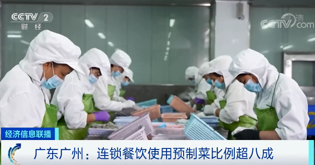 记者了解到,常见的预制菜形式,包括料理包或半成品,实际上是将备餐环节,从门店转移到了中央厨房,采取批量式、集中式的加工,有利于提升效率。目前,广州连锁餐饮使用预制菜的比例,已经达到了80%以上。