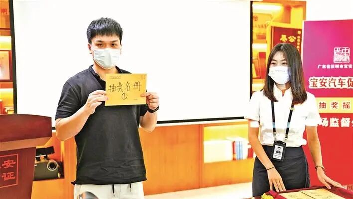 8月3日上午,宝安区2022年汽车促消费活动第二轮公证摇号抽奖在宝安公证处举行。第二轮抽奖名册9803名购车车主中,产生了600位幸运者,共同分享1000万元大奖。按照摇出的顺序,确定中奖的购车车主及其所获得的奖次,第1-300位为三等奖,301-500位为二等奖,501-600位为一等奖。一等奖每位3万元,二等奖每位2万元,三等奖每位1万元,奖金总计1000万元。第一轮抽奖已于5月31日在宝安公证处顺利举行,600名幸运者喜得奖金。