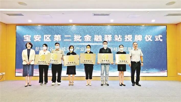 8月4日,宝安区在区金融超市举行第二批金融驿站授牌仪式,在泰华梧桐岛、航城智谷·中城未来产业园、碧桂园凤凰智谷、合一凤凰智慧港(大湾区5G物联网智慧园区)、天格科技园、海船大厦共新增6个金融驿站。宝安区工业和信息化局(金融工作局)已经打造两批共10个金融驿站,第三批金融驿站正在申报中。