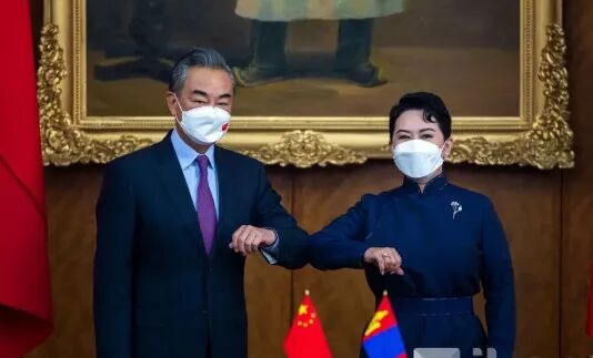 8月8日上午,中国国务委员兼外交部部长王毅与蒙古国外长巴特策策格举行会谈。