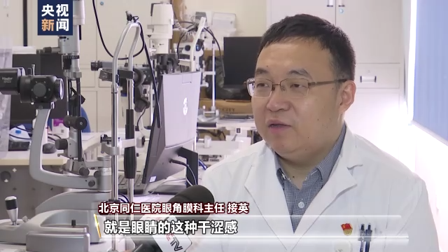 北京同仁医院眼角膜科主任 接英:它的最主要的一个症状,就是眼睛的这种干涩感。那么除此之外呢,还有这种烧灼感,发热的感觉,一些严重的患者,比方出现的比较严重角膜病变,会出现严重的明显视力下降,包括畏光、流泪,比较剧烈的疼痛。