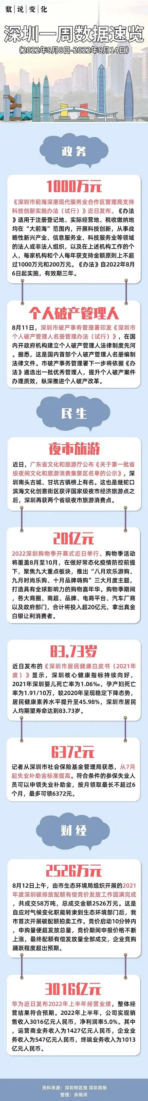 这一周,我们还能看到深圳兜住兜牢民生底线改善民生福祉新成效。从7月起提高失业补助金标准,符合条件的参保失业人员最多可领6372元。深圳拟发放一次性扩岗补助逾190万元,惠及企业共483家。