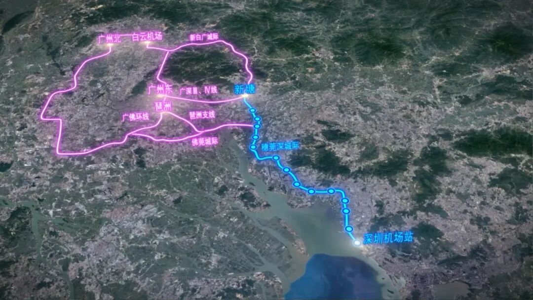 穗莞深城际机前段起于已开通的穗莞深城际深圳机场站,终至前海站综合交通枢纽,是粤港澳大湾区城际铁路网广深主轴的重要组成部分。