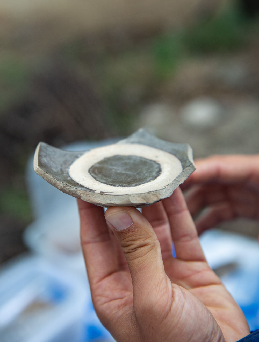 项目负责人、北京市考古研究院副研究员尚珩接过瓷片端详,“看弧度应该是瓷碗的碎片,是明朝官兵在这里驻扎时使用的。”尚珩判断,“而且这个碗还被修补过,有打锔子的痕迹,说明当时士兵们的生活比较清苦,即使碗破了,修补后还要接着使用。”