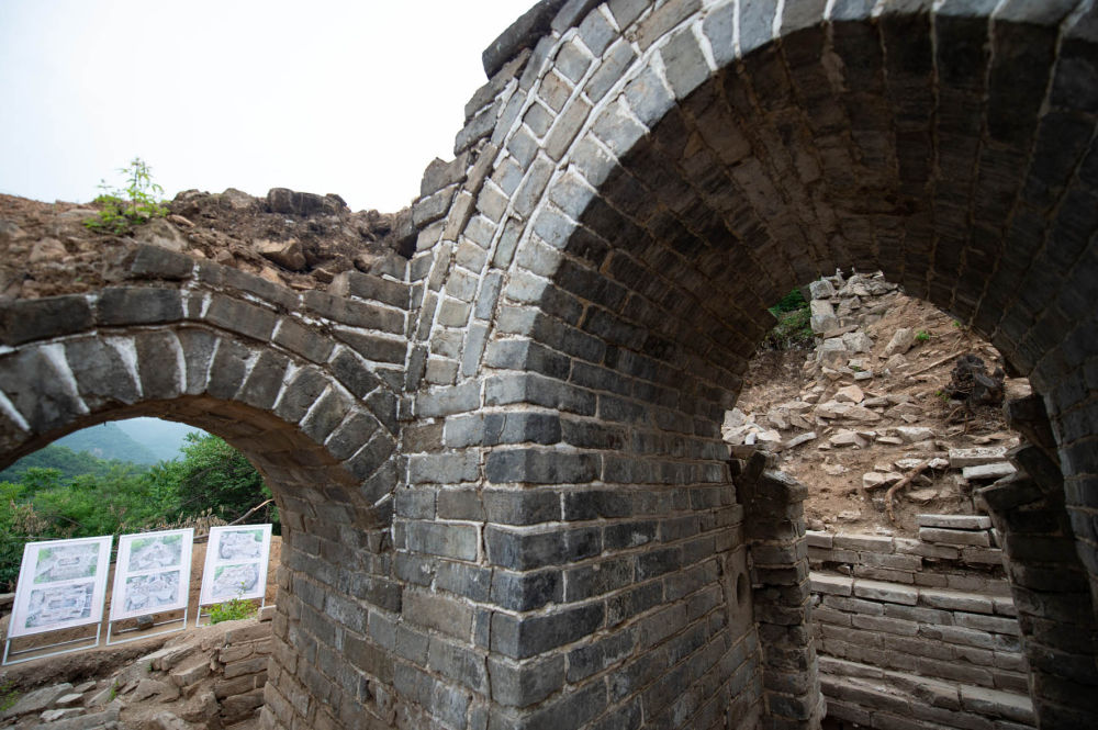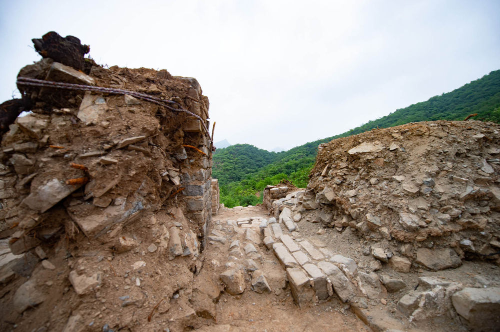 6月9日拍摄的考古后的大庄科段长城1号便门。前期考古工作明确了便门的建筑形制与结构。新华社记者陈钟昊摄